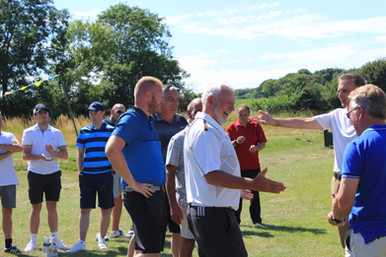 On Saturday July 8th fourteen teams set off, in the warm summer sunshine, to compete for the Charity Trophy which had been kindly donated by Vice-Captain James O’Sullivan. The course looked wonderful and with a hint of just a slight breeze there was every chance that scoring could be low. News from the course soon started to filter back to the clubhouse, tales of an eagle and birdies galore certainly fuelled the sense of optimism that it would be a low scoring day. Indeed as the early returns were recorded nothing suggested otherwise. Captain Graham Jackson and his team put down a very respectable marker of 135 (-7). Alan Best, with his team returned a score of 131 (-11) the same score that Dave Fox and his team posted to sit on top of the leaderboard, thanks to a better back nine. Not many thought that these two scores would be easily beaten until Alec Bayford and “Team Marmite” astonished everyone with their 129 (-13). No one had predicted such a great score even in the favourable conditions. The Valley course is always a stern test but it would appear that on this occasion “the monster had been brought to its knees!” Good scoring continued to be the order of the day and with only a few groups left on the course nobody was betting against the current leaders. There was a wonderful atmosphere in the clubhouse thanks mainly to the hard work of Toby and his staff, who served up a mouth-watering lunch and kept the drinks flowing all day. Back on the course Vice-captain James O’Sullivan had a strong team “Crashbandicoot”, with last year’s Captain Sean McAuley, now living in Lincolnshire, making a welcomed return to the Club. There was also a team of guests “The Outsiders” who were very much the dark horses and last to come home but not forgotten “The Lions” lead by Malcolm Rosborough.
